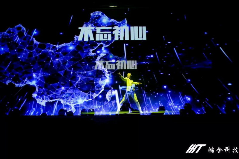 年會開場前,鴻合工程顯示團隊精心策劃了創意全息投影紗幕秀,慶公司生日快樂,賀公司上市成功,為我們獻上了一場美輪美奐精彩絕倫的視覺饕鬄盛宴!