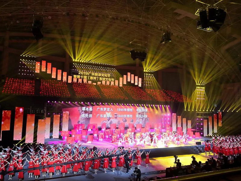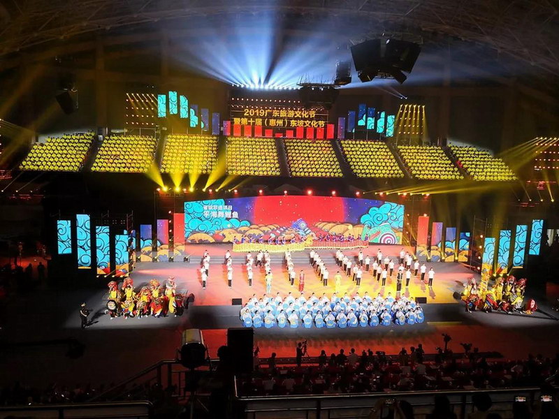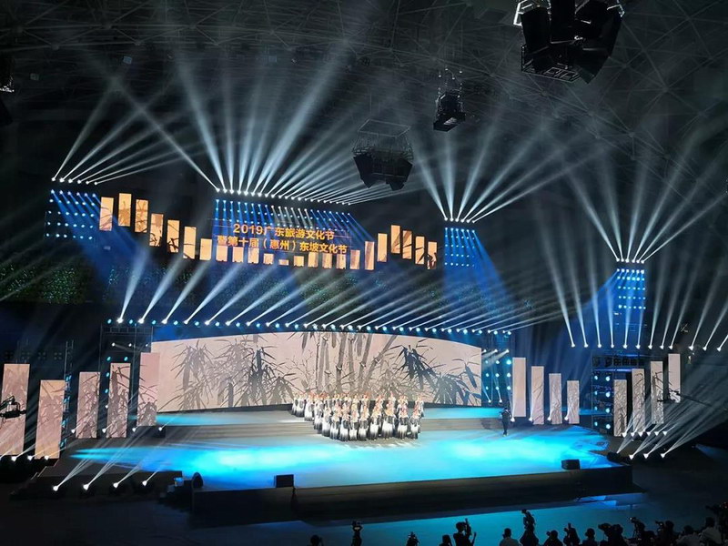 恢弘大氣的舞美效果,色彩繽紛,展現出東坡文化、嶺南文化、惠州文化深厚的文化底蘊。