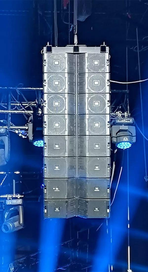 本次錄制使用20只JBL VTX線陣列揚聲器搭配SOUNDCRAFT數字調音臺,舞臺兩側主擴聲各使用了8只雙10英寸JBL VTX V20全新線陣列揚聲器,吊掛的高度約8米,使聲音從空間上可以完整均勻的覆蓋全部觀眾席;舞臺臺口兩側各落地擺放2只JBL VTX S25超低音揚聲器;保證了所有觀眾席的位置都能清晰的聽音,且音色平滑細膩。