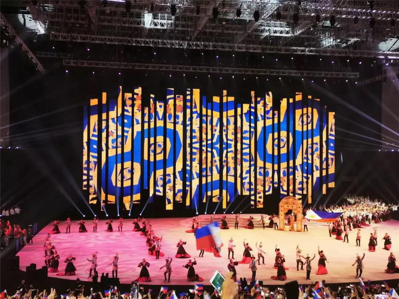 本次開幕式的操刀團隊是來自2012年倫敦奧運會開幕式的團隊,為了展示出濃郁的菲律賓文化特色以及“同心共贏”的主題,舞臺設計并沒有按照常規的方式進行,在LED顯示屏的搭建上也充滿了挑戰。