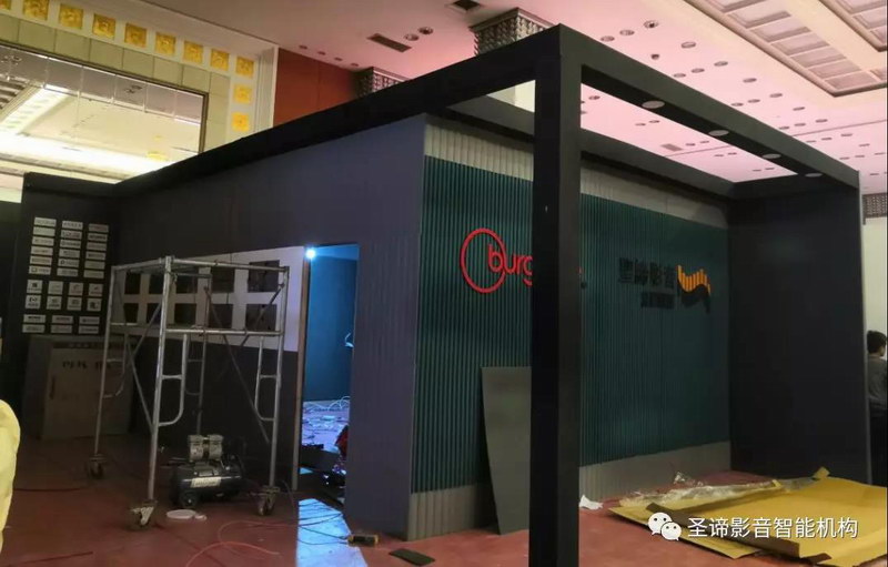 讓前來觀展的觀眾能夠真正體驗到產品優勢和特點、影院級視聽效果,享受觀影帶來的樂趣,于是在C12展位空地條件的基礎上,聯合佰家麗影院聲學材料,從零開始16小時快速搭建。