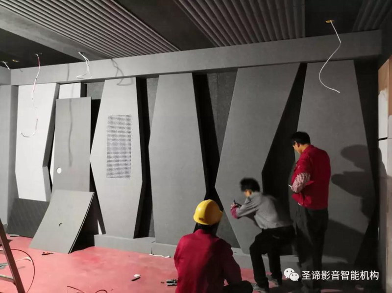 此次能夠在那么短時間之內,順利搭建出實景影院展房得益于佰家麗公司對于整個影院設計和安裝的精確把控,利用他們影院聲學材料的特點和優勢,統一打造模塊化快速拼接安裝模式。