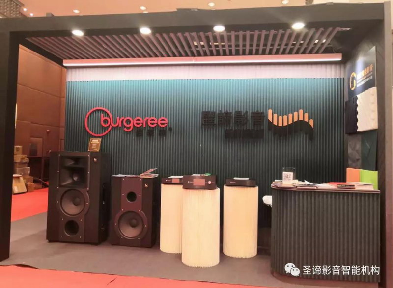 圣諦連續幾年參展,了解到由于展館內空間位置及搭建條件限制,大多數的影音參展商在一個狹窄的房間內進行音箱類產品的展示,簡單擺設幾件產品,或者搭建安置音箱的背板或桁架,或者組個2.1聲道系統放音樂,對于聲學的處理是很有限的,并且展館內人流涌動十分嘈雜,很多家參展商都同時外放音樂,聲音非常的混亂,因此更不要說觀眾體驗的效果了。