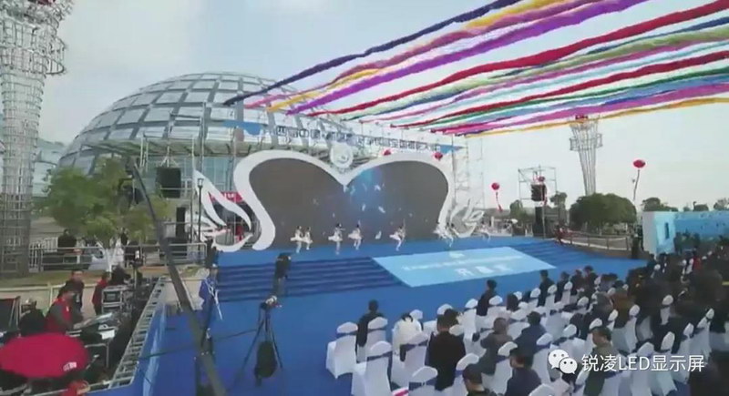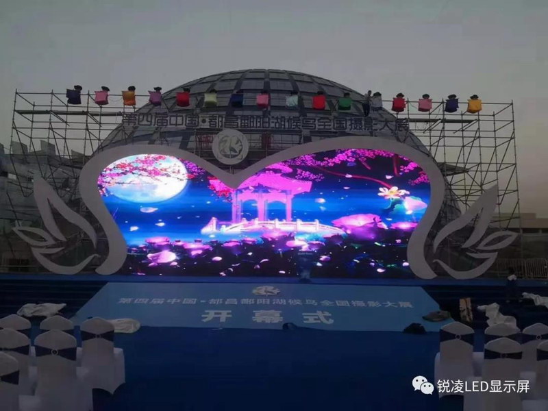 本次第四屆都昌攝影大展的開幕式舞臺,造型新穎,舞臺中央近兩百平的背景LED大屏幕項目,由銳凌南昌經銷商承建,使用的是銳凌戶外租賃爆款,最新產品--戶內外通用,單人可輕松拆裝,永不黑屏的R39舞臺租賃屏。獨特的拼弧設計,可以無縫拼接成任何你想要的舞臺屏造型。輕薄箱體,輕松拆裝,隨搭隨拆,防磕碰護角設計,再多次的搬運拆卸也無需擔心磕燈死燈;均流雙備份電源供電,完美表現,永不黑屏。