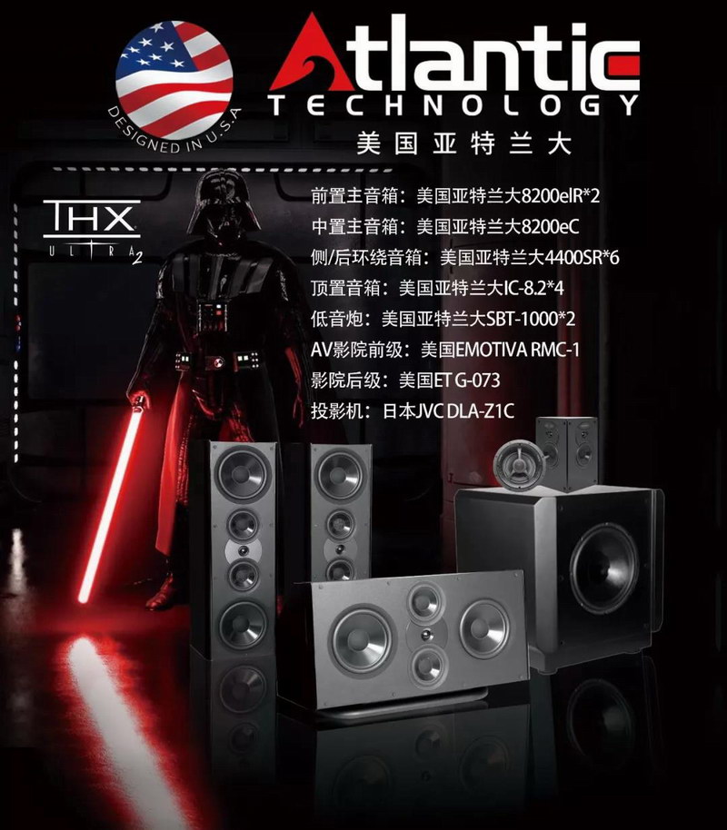 美國AtlanticTechnology是個與家庭劇院系統發展歷史緊密相關的品牌,其創立者Peter Tribeman于1975年就開發出全球第一部高傳真的家用多聲道音響制品,1982年帶領杜比實驗室與盧卡斯影業(Lucasfilm)合作并公開展示第一個家庭劇院系統,之后由1990年代迄今Atlantic Technology的多聲道喇叭系統,幾乎全都通過THX認證,也獲得眾多專業家庭劇院媒體作為評鑒參考標準,其中System 450e THX更進駐盧卡斯影業的「天行者牧場」擔任教育訓練的重任。