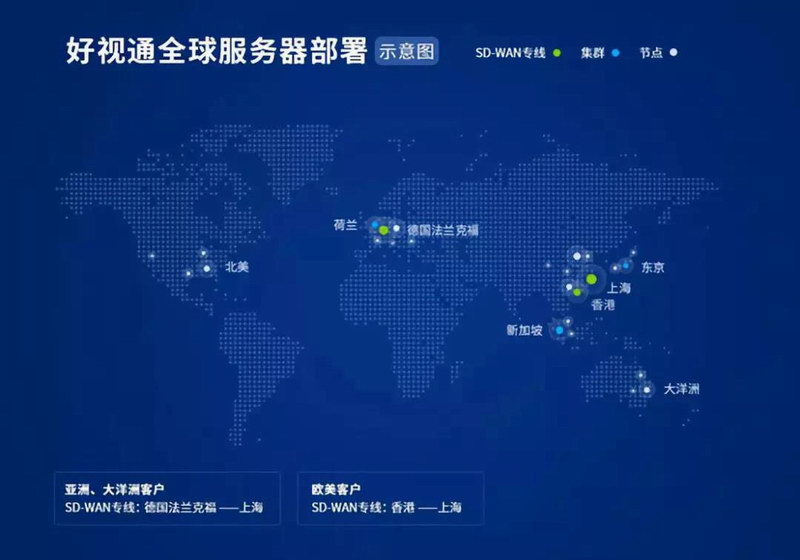 不僅如此,好視通還部署了跨境的SD-WAN專線,以上海為國內的核心,形成了一個專線網絡,進一步提升和優化用戶跨境視頻協作溝通的體驗。