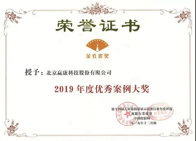 12月20日,2019視聽行業高峰論壇暨金孔雀頒獎在深圳隆重舉行,該論壇是視聽行業權威性的行業論壇。贏康憑借著2019年出色的項目工程工作,在頒獎典禮上獲得了2019年度大屏幕行業系統集成工程商大獎與2019年度優秀案例大獎。