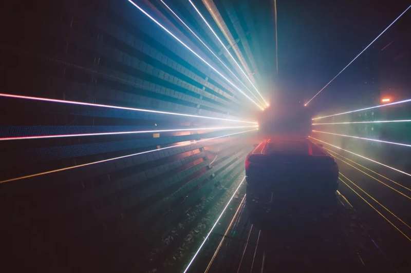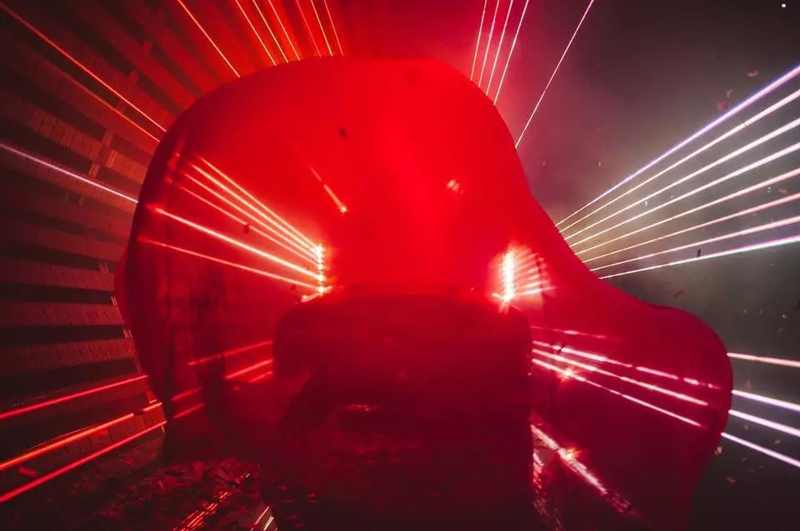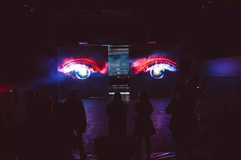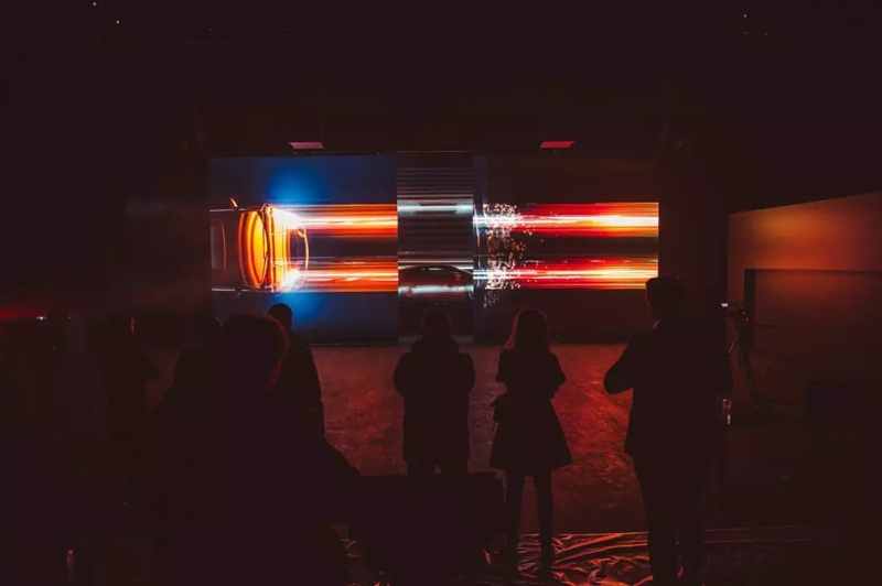 最特別的特征是紅色雪紡帶漂浮在舞臺(tái)上,與汽車(chē)一樣,它消除了真實(shí)世界和虛擬世界之間的界限。