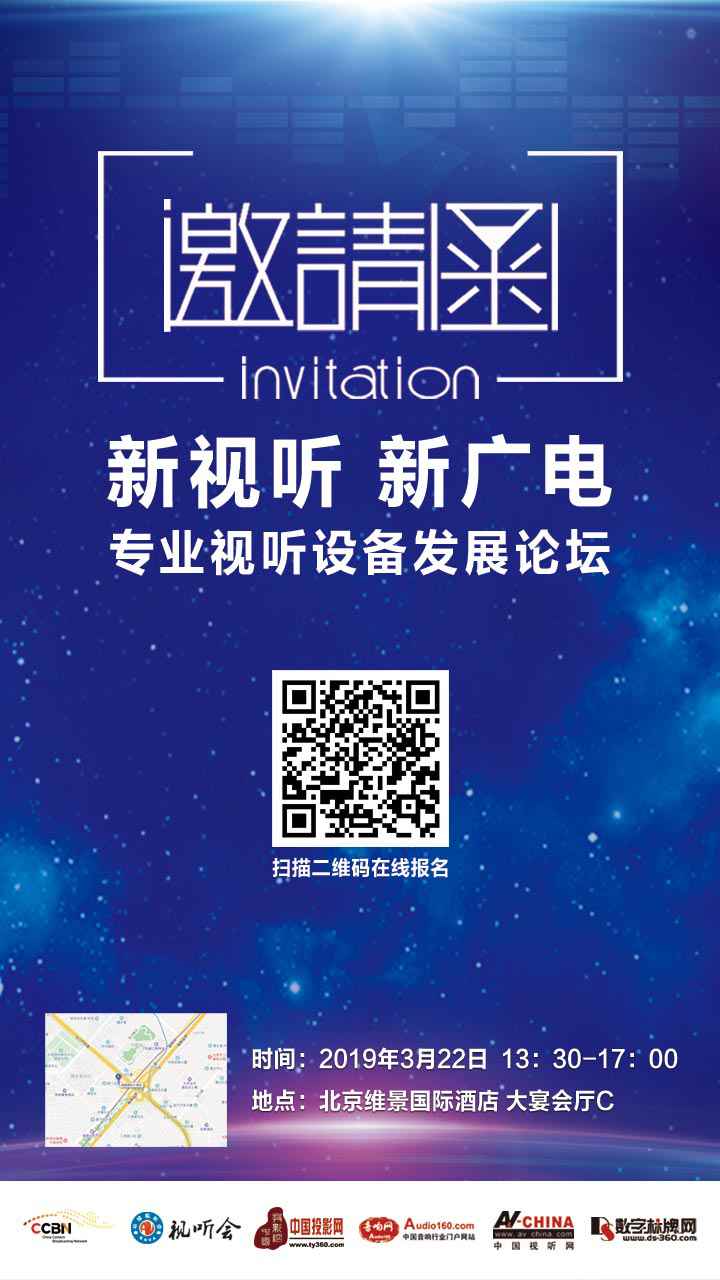 在此,誠邀各位視聽行業同仁蒞臨參加3月22日北京“新廣電·新視聽”專業視聽設備發展論壇,行業的發展離不開你的支持,趕緊掃描邀請函上二維碼在線報名,期待與您在論壇現場見面,不見不散!