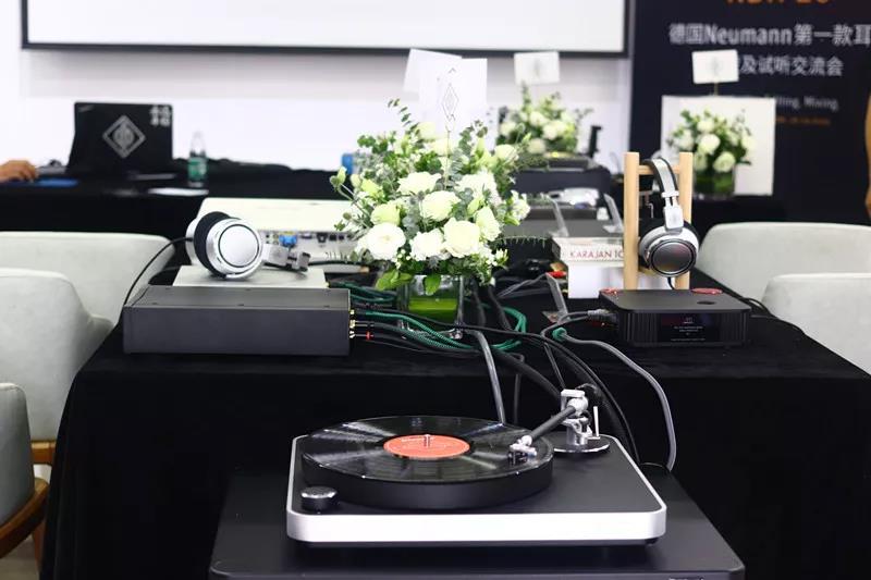 活動現場整體以Neumann品牌配色為主調,以品牌歷史墻、產品海報來營造交流試聽會的氛圍,再加上白色鮮花的點綴,格調十分的優雅。