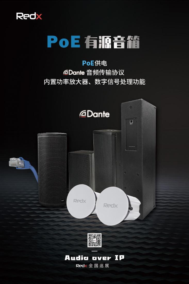 作為國內音頻行業的創新領導品牌之一,Redx一直專注于音頻IP化系列產品的創新與研發,致力于為市場提供全網絡化音頻解決方案和技術支持服務。在本次的全國巡展中,Redx在現場展示了數字音頻處理器、SSA數字功率放大器、PoE動力音頻模塊、PoE音箱以及PoE網絡化音頻解決方案。