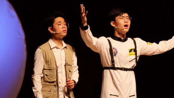 “梆——梆——梆——”“我們是隔壁隊對象隊”帶來的話劇《舌頭考》以幾聲清脆震耳的敲鑼聲拉開了演出大幕。大賽隊伍先后演出了《抓狗》《宇航員的眼睛》《帝女花Remix》等多個原創戲劇。舞臺上,每一個有血有肉的人物角色都展現出參賽者對話劇的熱情和創造力。