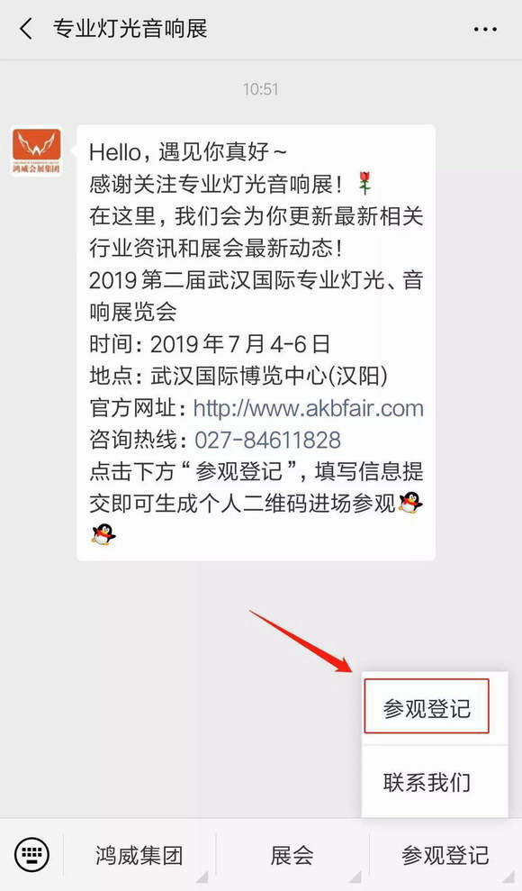 關注"專業燈光音響展"微信公眾號,點擊“參觀登記”即可進入登記的頁面;登記領取二維碼即可到現場免費領取參觀證。
