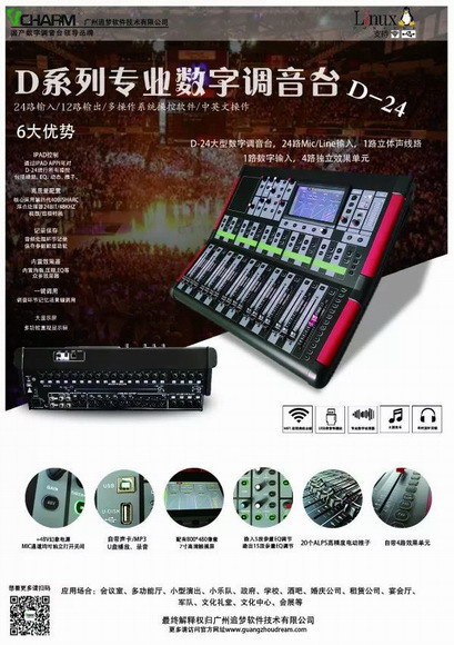 D系列數字調音臺是追夢自主研發設計的一款全數字"專業數字調音臺",支持多操作系統操控軟件(IOS系統、Android系統、 WINDOWS系統);