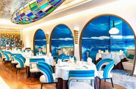 每間餐廳依然是萌萌噠的海洋主題,就連桌椅板凳都充滿童趣,猶如游樂園一樣。除此之外,餐廳通過設置局部較高亮度的照明氛圍,使菜品顯得更加新鮮誘人,簡單中彰顯大度美,讓每一位小寶貝兒在此食欲大增。