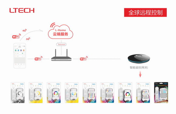 雷特Mini無線控制套裝兼容9臺不同功能的遙控器(專利技術),用一臺接收器即可體驗到調光、調色溫、RGB、RGBW控制,滿足客戶不同的需求;通過RF遙控器可以進行速度、亮度調節,自定義任意色,靜態顏色選擇以及各種動態燈光變化效果,操作簡單便捷。