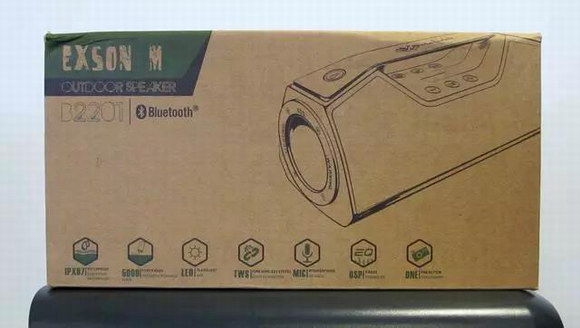 EXSON B2201按官方的說明,是定位于戶外運動和休閑的2.0CH藍牙音箱,難怪產品外包裝用了這種明顯帶有戶外屬性的暗綠色。