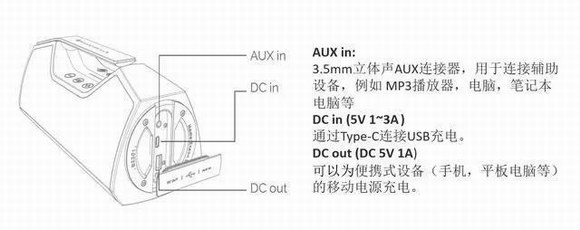 另一端是帶有橡膠封條的TYPE-C充電口+應急充電口+3.5mm LINE-IN。這音箱內置了5000毫安電池,是其他藍牙音箱起碼一倍的電量,還設了一個USB充電口,可以給其他數碼設備進行緊急充電,也算是大重量的價值體現吧。塑膠封條保證了IPX7的防水性能。