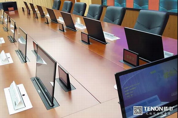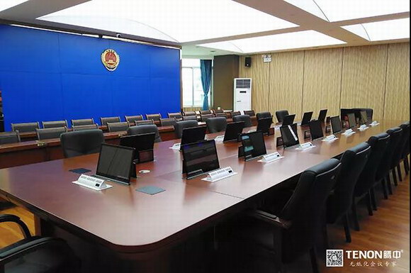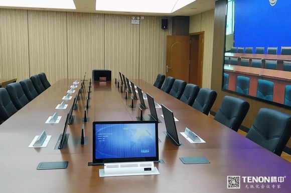 該項目主要安裝了TENON(騰中)液晶升降一體機、嵌入式會議單元、桌牌升降一體機、無紙化會議終端、數字會議控制主機、數字編解碼器、數據交換中心等。通過這些設備,實現對無紙化智能會議系統、擴聲系統、會議討論系統的有序控制,方便快捷。