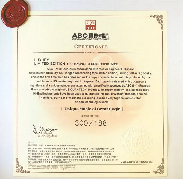 ABC模擬母帶霣驗室出品的母帶副本是直接從原版模擬母帶錄製而成,因爲ABC模擬母帶霣驗室持有這些原版,幷持有發(fā)行限量版(每種 300盤)的許可證。
