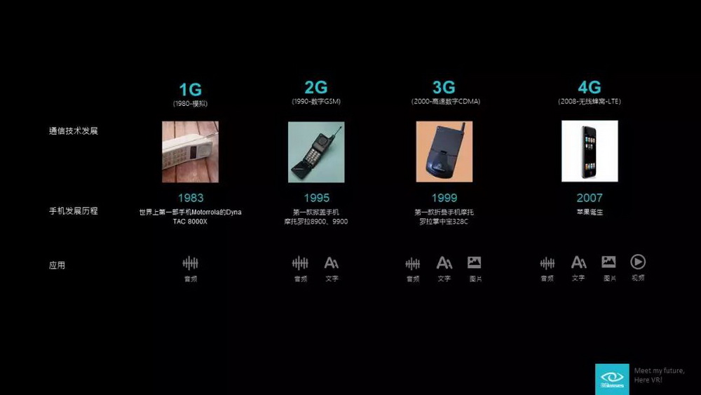 下面,我們要說說虛擬現實的歷史。大家可能想到虛擬現實就是一個頭盔,頭盔只是載具。這項技術早在40年前已經有,1995年的任天堂的第一款產品出來,但是它沒有真正面向市場。2013年Facebook收購的DK1,2014年3Glasses的D1,一直到之前我們看到的虛擬現實產品,我們都稱之為頭盔。為什么叫頭盔?是因為受限于供應鏈的影響,因為任何產品都需要完整的供應鏈生態,它沒有辦法把現在已有的任何供應鏈的生產完全拿來用,沒有辦法完全用手機,所以它是一個全新的業態。