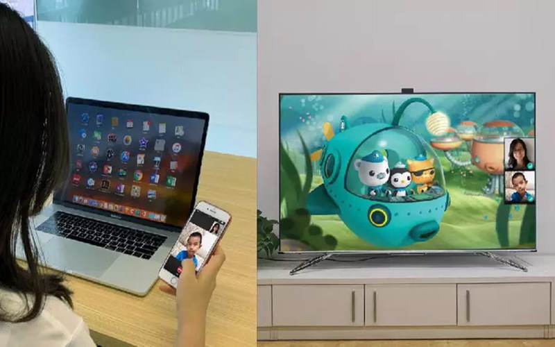 支持大屏和手機同時在線的六路視頻暢聊及共享放映廳,可以讓親友團一起追劇、一切聊球、一起暢聊。個人用戶則可以創建共享放映廳,親友團可共享影視內容,在海信云平臺上通過認證的大V也可以創建放映廳和粉絲共享精彩內容。“大屏朋友圈”生態躍然屏上。