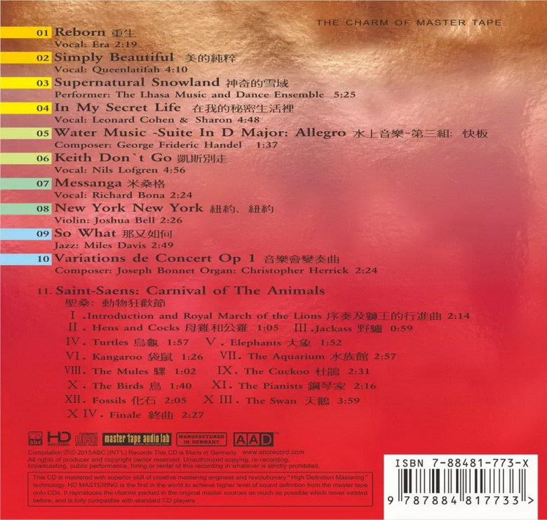 美國西電8號曆來是最好的壹張試音碟,前十首是Hi-Fi友人必備用來測試自家設備的瞬變、動態、沖擊力和『快而準』的低頻響應如何令人震驚,只要妳扭大音量聆聽(因爲錄音電頻較低),就會見到面前營造出壹個充滿熱鬧勁力的音樂場面,用【無壓縮音樂】版,碟中10首樂曲表現出來更是勁抽到前無古人。美國西電8號曆來是最好的壹張試音碟,前十首是Hi-Fi友人必備用來測試自家設備的瞬變、動態、沖擊力和『快而準』的低頻響應如何令人震驚,只要妳扭大音量聆聽(因爲錄音電頻較低),就會見到面前營造出壹個充滿熱鬧勁力的音樂場面,用【無壓縮音樂】版,碟中10首樂曲表現出來更是勁抽到前無古人。