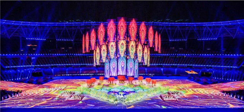 為確保民運會開幕式宏大的現場演出完美呈現震撼的視覺效果,作為全球視覺影像專家,巴可UDX-4K40系列投影機,以穩定可靠的產品性能、真實的色彩輸出、高品質的亮度表現能力,為第十一屆民運會開幕式保駕護航。