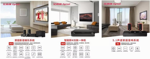 此次展出的M系列智能影音產品,包含了三款不同風格、價位的產品。億格瑞持續深化家庭影音產品線,向智能家居、智能影音領域進一步滲透。