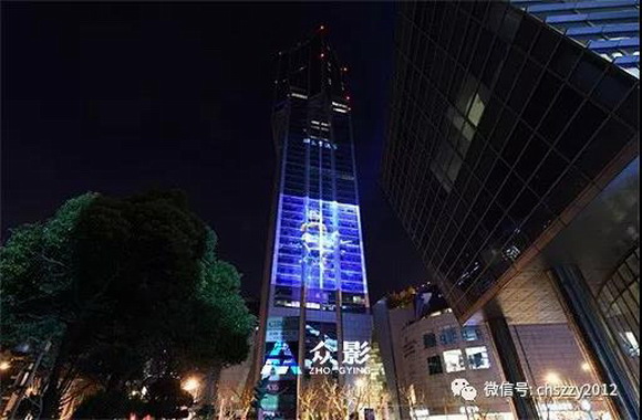由于上海仙樂斯廣場的墻面玻璃是金黃色的,普通的投影方法無法滿足亮度要求。因此,工作人員對墻壁施加了膜處理,其長度為37米,高38.9米,以確保光路的正常折射并實現更好的成像效果。