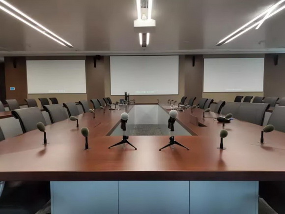 在多媒體會議室中,大屏幕顯示系統解決了我們眼睛看的問題,對于我們人類接受一個完整、立體的信息來說,還有一項很重要的手段,那就是語言或聲音。自然聲源的聲功率是有限的,在室內聲學條件不能滿足時,經常借助擴聲系統。
