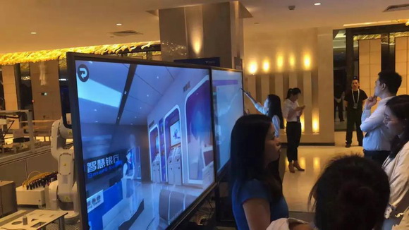 參會(huì)人員正在操作體驗(yàn)酷彩一體機(jī)