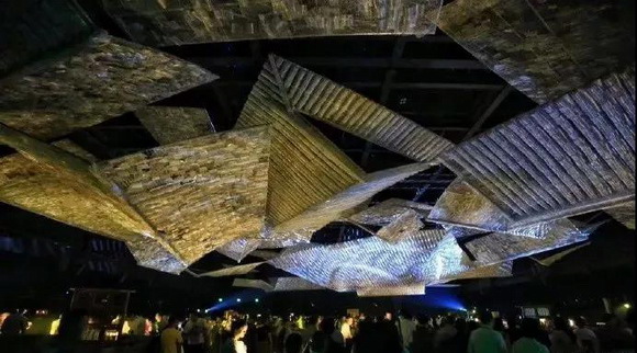 整個項目占地規模約7.8萬平米,總建筑面積30240平方米。項目篇幅宏大、包羅萬象,包含三個劇場,即“云之上”情境體驗劇場,劇場外部采用50多萬片小型青瓦和9萬片大型彩色玻璃瓦進行構飾,內部包含6大空間劇場,觀眾行進式觀演,在時空中穿梭,在不同故事里穿梭,如在云海之上,俯瞰人間;