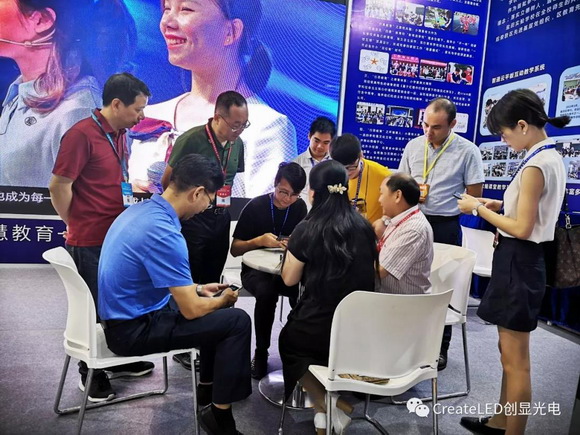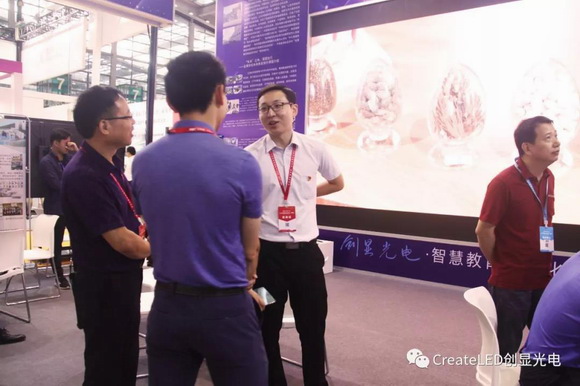 深圳市教育局副局長、黨組成員,市委教育工委委員朱迪儉;深圳市教育局副局長、黨組成員,市委教育工委委員趙立;深圳市教育裝備行業協會會長彭錦環以及來自全國各地教育裝備中心和教育裝備行業協會的領導嘉賓到鹽田區展位參觀指導。與此同時,展位上最引人注目的是由深圳市創顯光電有限公司提供的高清LED智慧教育一體化解決方案,屬于創顯高清系列LED顯示屏。
