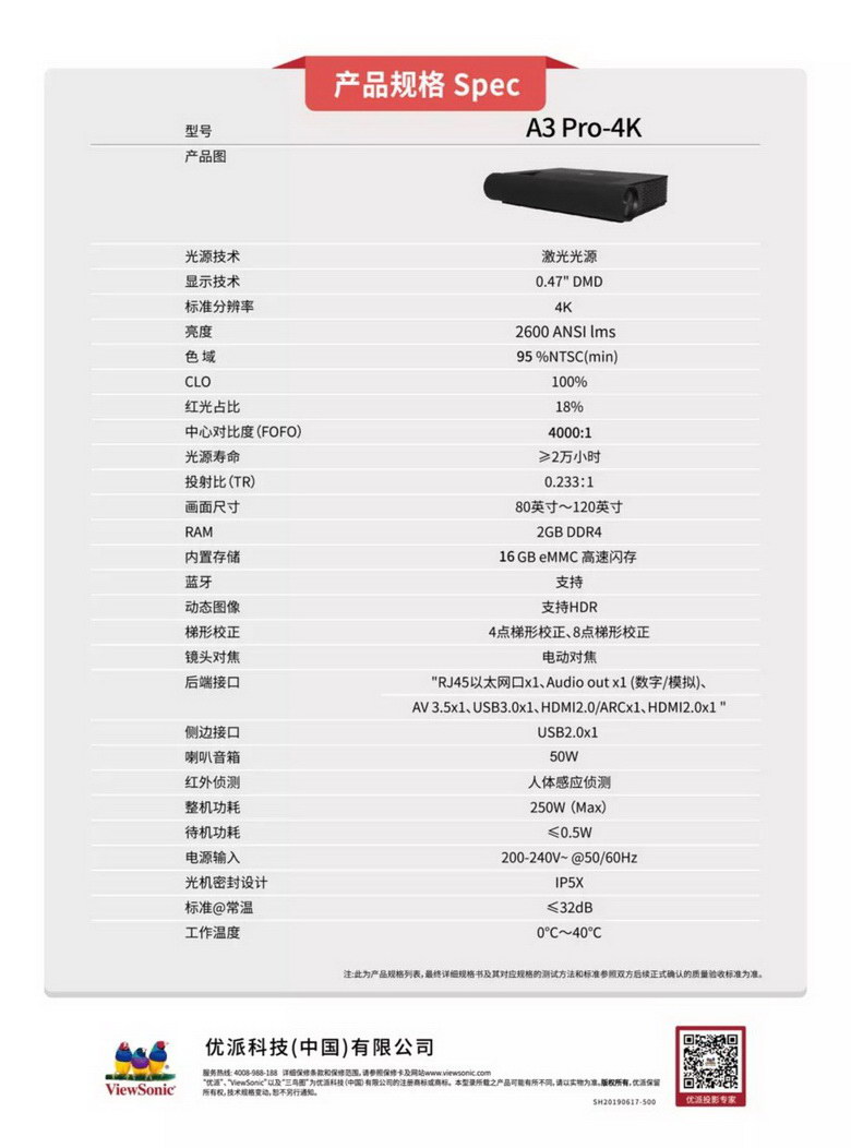 針對此次“虹”A3 Pro-4K激光電視新品上市, 優派公司以及全國總代理上海麗景,共同制定了力度空前的展廳上樣、銷售預定政策(限量100臺),如有意向,請及時聯系麗景各地區銷售詳細咨詢。
