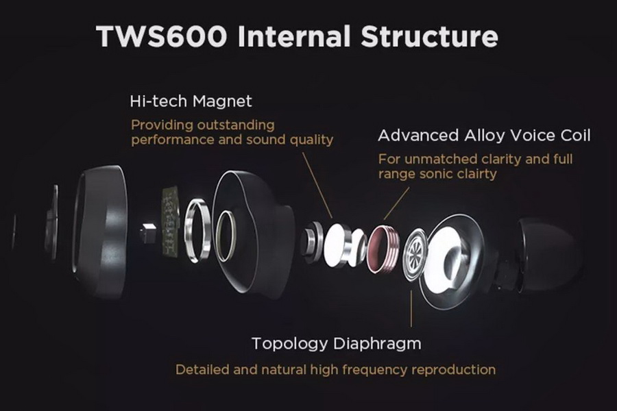 技術(shù)上TWS600運(yùn)用高科技磁鐵來提供出色的性能與音質(zhì),先進(jìn)的合金音圈提供聲音無與倫比的清晰度,拓?fù)湔衲?Topology Diaphragm)結(jié)構(gòu)提供高頻更多細(xì)節(jié)和自然音色。