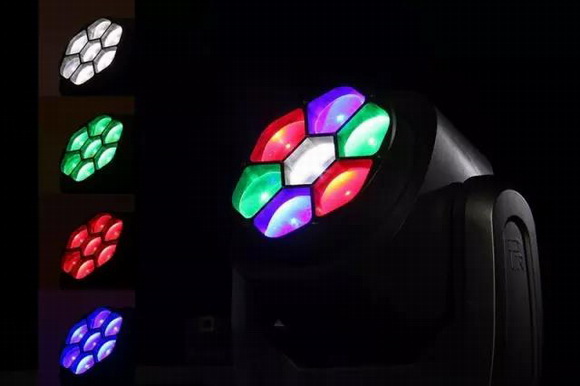 最小角度能投射出3.3°的銳利光束,最大角度能作60°的大范圍鋪光。四合一光源出光混色均勻,燈具光斑均勻沒有色塊。