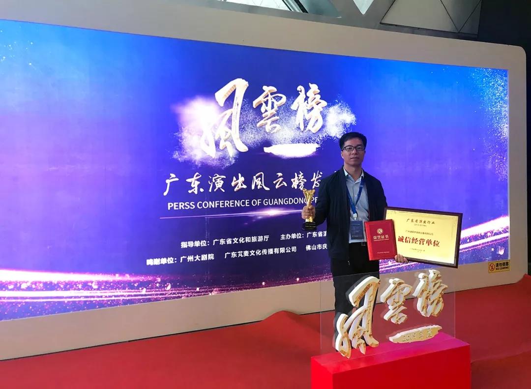 PLA譜萊聲榮獲廣東省演出行業誠信經營單位