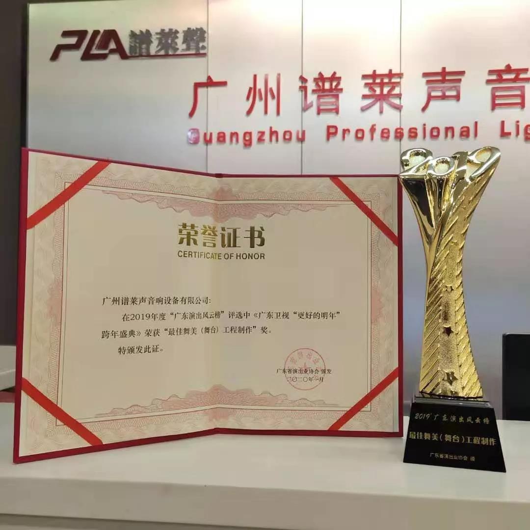 在眾多參評單位的激烈角逐中,PLA譜萊聲脫穎而出,榮獲“最佳舞美(舞臺)工程制作”,“廣東省演出行業誠信經營單位”。