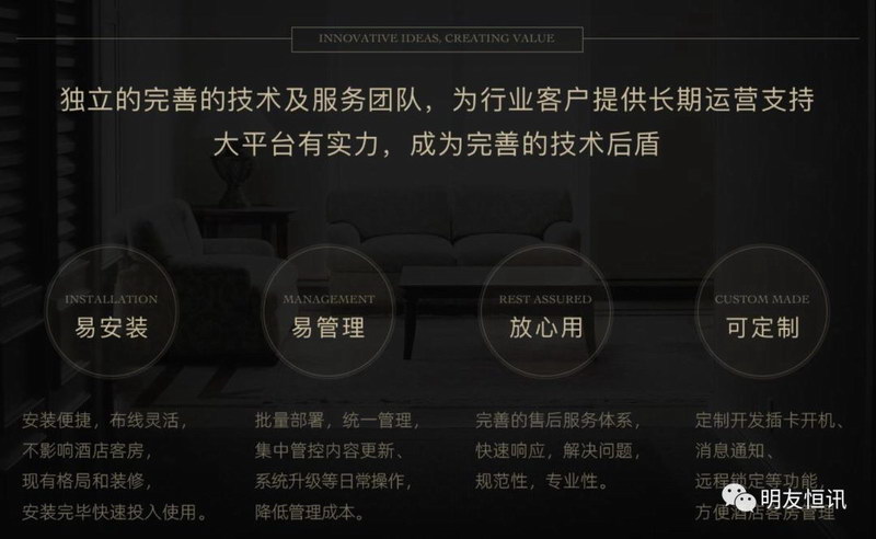 從智能影音硬件、影視內容供應、酒店管理系統定制、對接、顧客服務平臺構建,為各行業客戶提供全方位、一站式的品質服務。