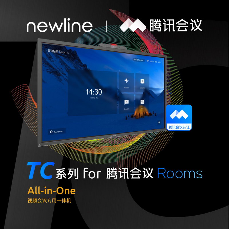 newline作為首家通過騰訊會議專業認證的會議屏廠商,領先的TC系列產品內置騰訊會議Rooms軟件,并且完全適配騰訊會議的技術要求,配備高性能的騰訊會議定制專用工業級內置電腦(OPS),真正將“軟+硬”及“云+端”融合為一,為企業打造適合團隊協作的“云會議”會議室場景,提升現代化溝通協作的共享協同、智能會控、視頻會議、信息共享能力。