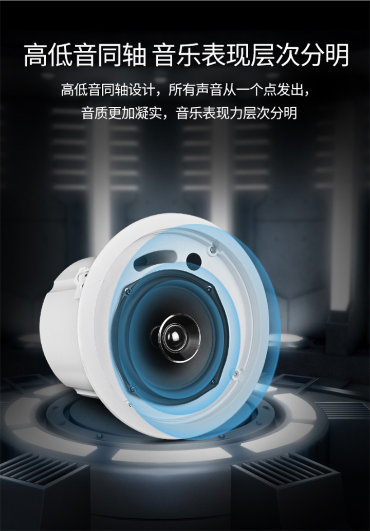 EBS-640吸頂音箱根據空間結構合理的分布在天花板上,可節省空間,還能利用天花板起到隔音效果,甚至可以解決聲音繞射以及箱體音箱會箱體振動的問題。同時它的防塵網罩設計美觀大方,能裝飾天花板和起到對音箱防塵的作用。