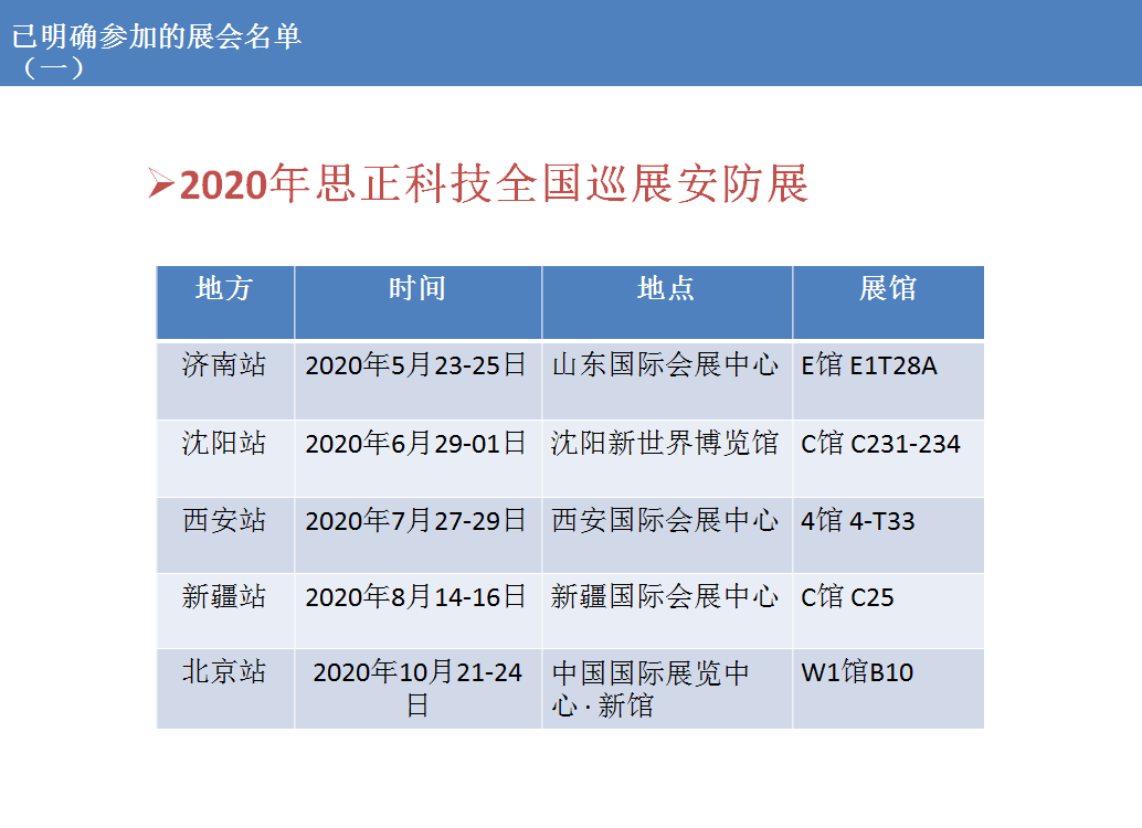 2020年思正全國(guó)智能家居展暨全國(guó)巡展安防展,歡迎您提前報(bào)名參加,我們將一如既往的提供優(yōu)質(zhì)的服務(wù)。