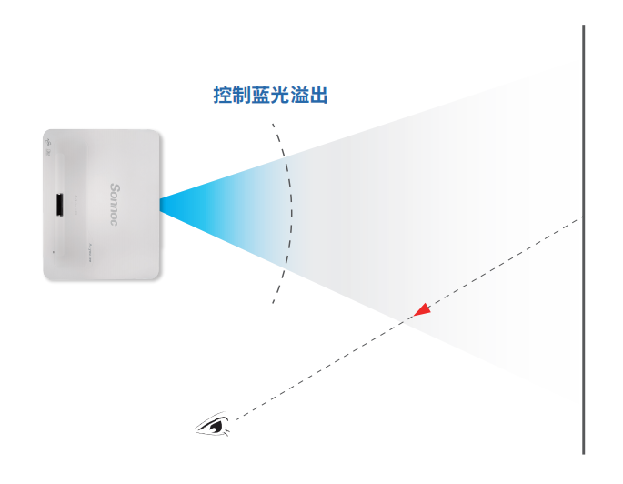 同時具有專業“顯示設備顯示性能和視覺健康”認證的投影機,可以有效控制溢出藍光危害部分(波段:420nm~460nm)。