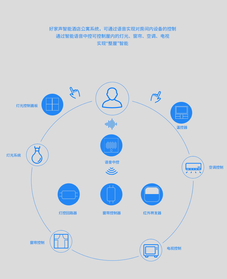 完全沒有問題,好家聲智能酒店客控系統采用離線語音技術,酒店升級改造沒有任何技術門檻,普通電工就能輕易實現設備安裝調試,維護售后也非常簡單,真正解決了酒店的后顧之憂。