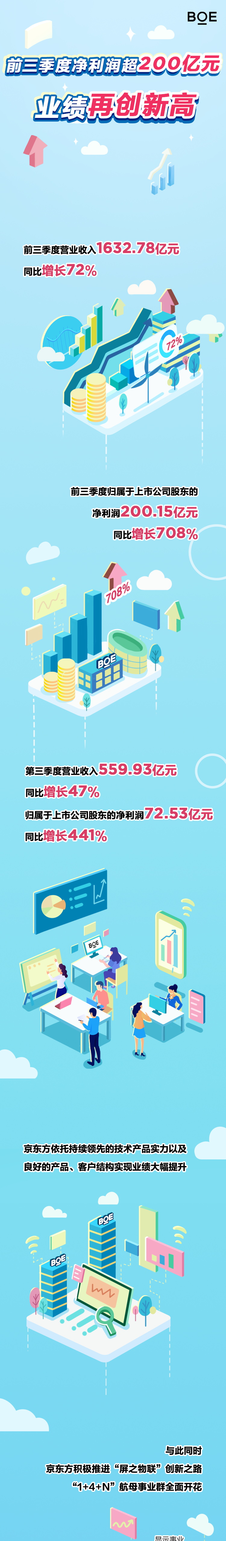 特別關注 | BOE(京東方)2021前三季度凈利潤超200億元 增長超7倍再創歷史新高