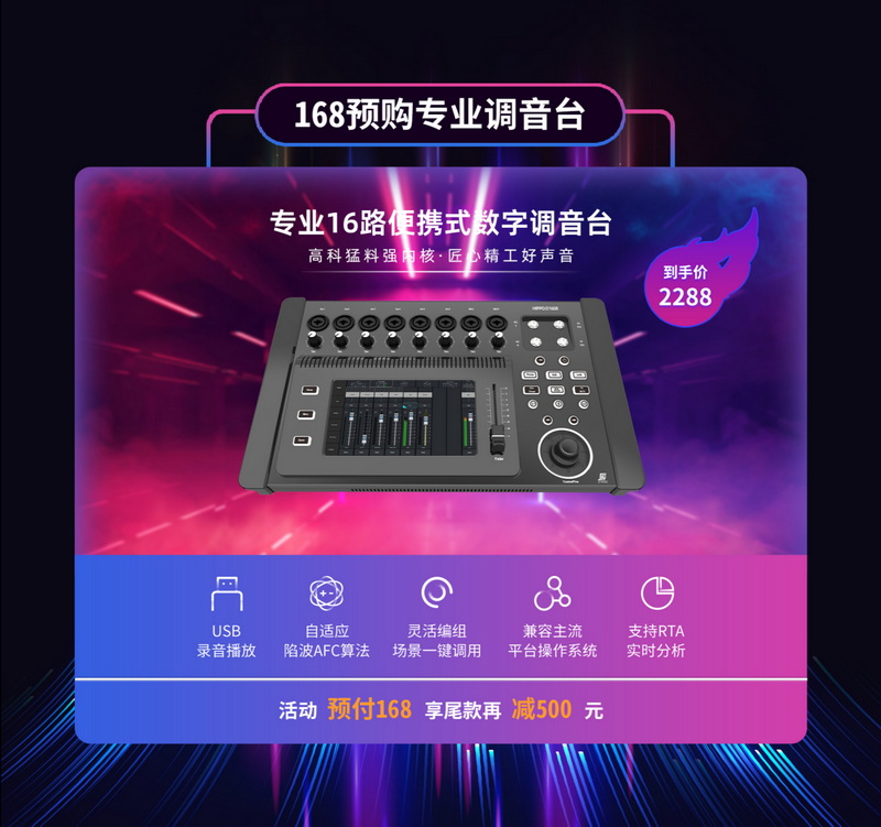 聲菲特全新推出的HIPPO D1608便攜式專業數字調音臺,更符合現代多功能廳與各類型會議室對音頻的專業要求,內置的混音與效果能夠充分滿足多功能廳不同會議場合和使用場景的需要。即使是面向經驗不足的操作人員,其人性化界面與設置也能將完美的聽覺體驗帶給室內每一位聽眾。交互的便利與操作的快捷,將帶給大家與傳統模擬調音臺設備不一樣的豐富體驗。