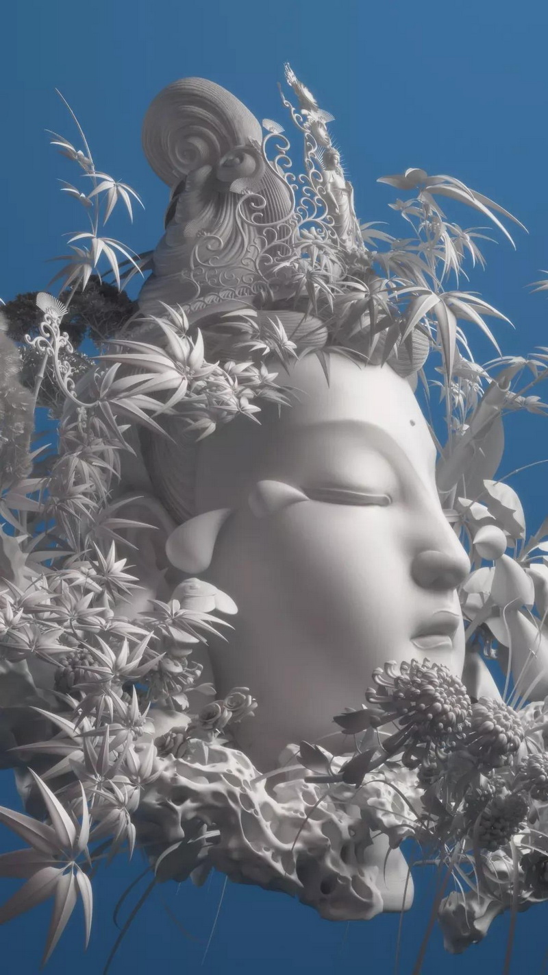 談到過去對于現在的影響,大悲宇宙點了點頭說,“我只是把我所學所想融匯到了一起而已。”早期畫畫和游戲方面長時間的堅持奠定了他在數字藝術方面的基礎,2014年對于玉雕的短期的學習又讓他對于宗教藝術有了全面的認識,這些過往的經歷造就了現在的他和他的作品。