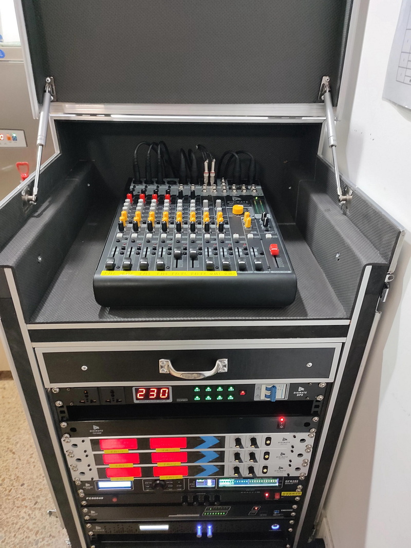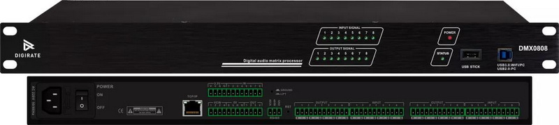 此次改造中,核心兩個設(shè)備為(DIGIRATE)迪吉瑞帶HDMI模擬調(diào)音臺以及數(shù)字音頻媒體矩陣DMX0808