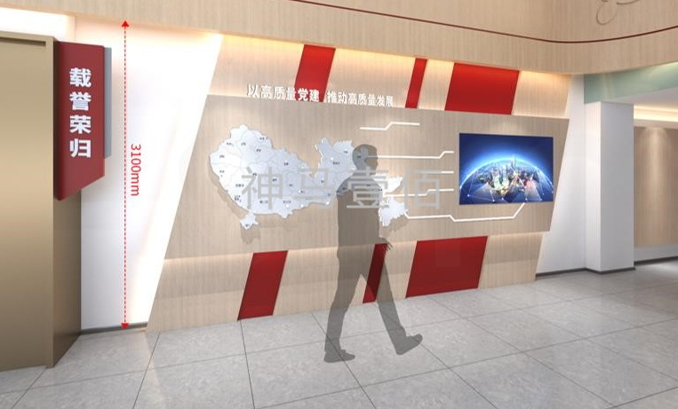 LED屏+地圖聯動左邊的深圳地圖標注深圳市場監督管理局各分局的位點,通過觸發各位點,產生光電特效,同時右邊播放屏播發各單位開展的黨建活動現場照片。
